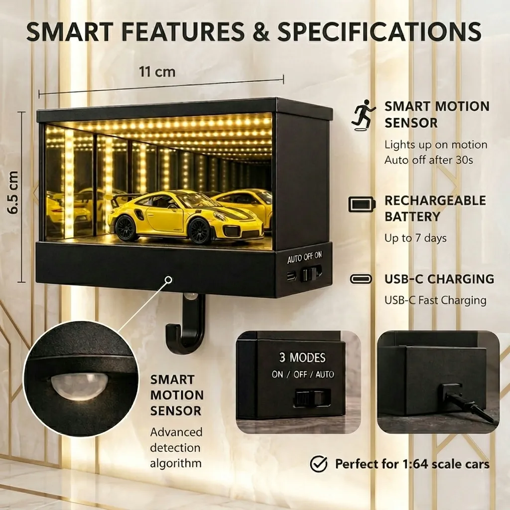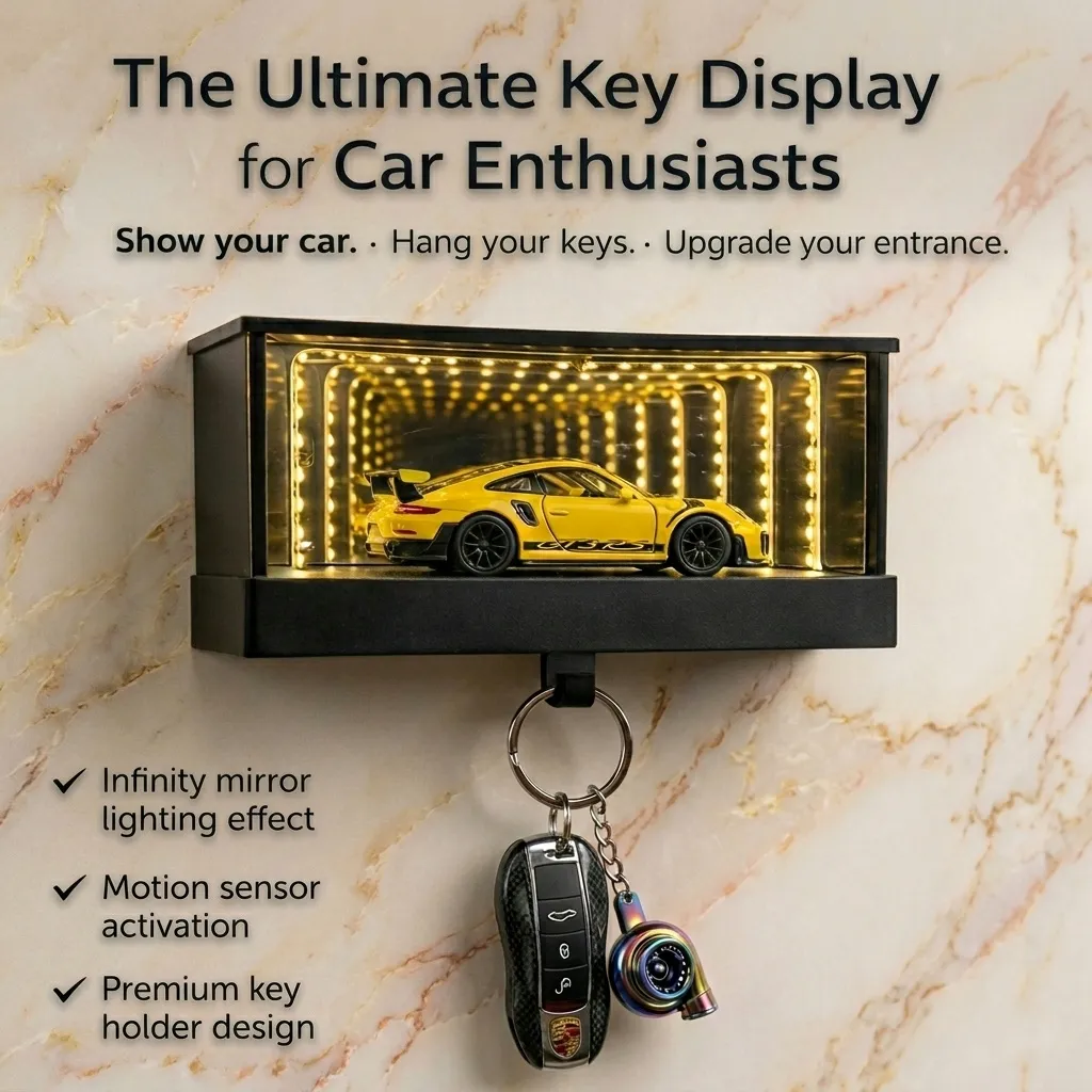 This key holder is really cool. When I hang my car key the garage light effect turns on and it looks amazing.